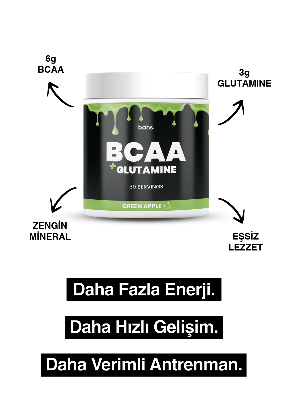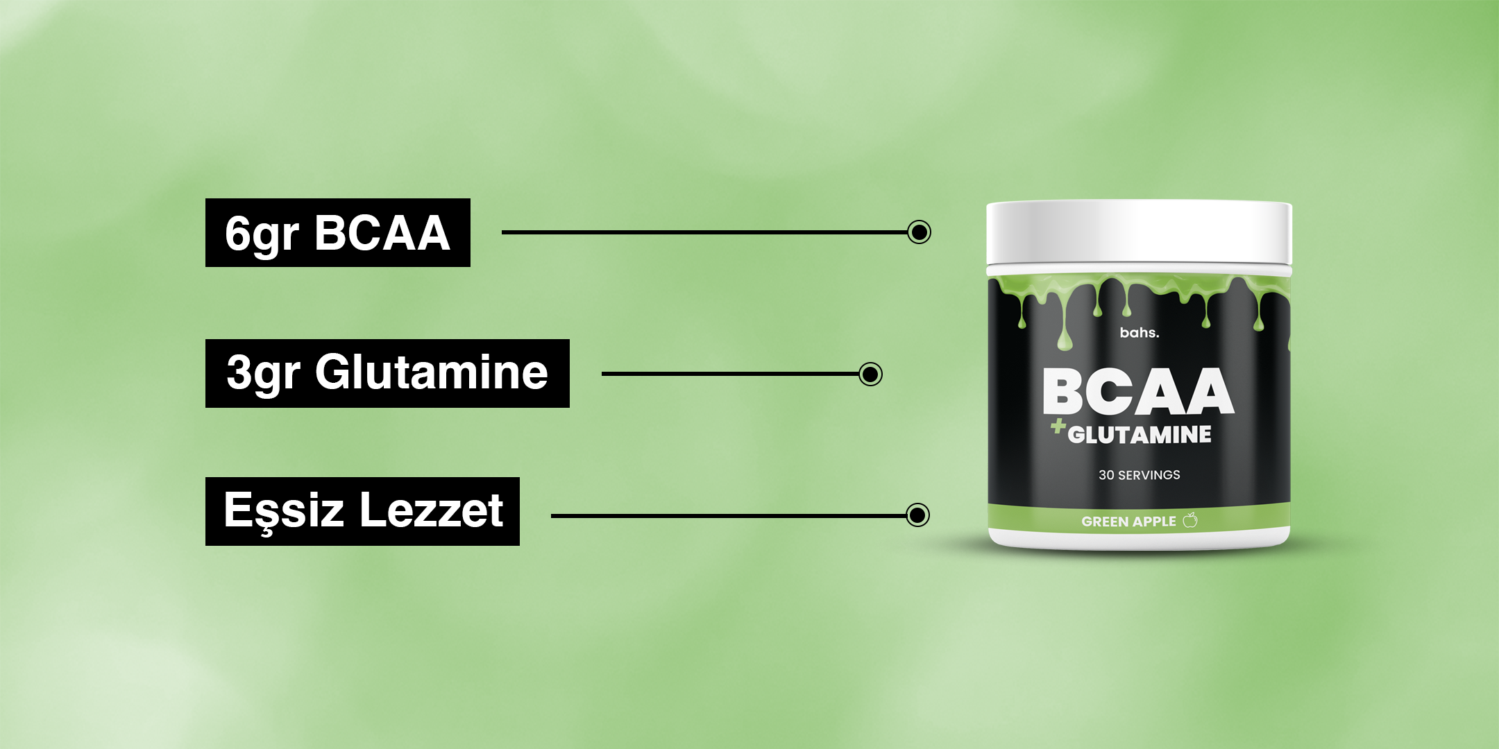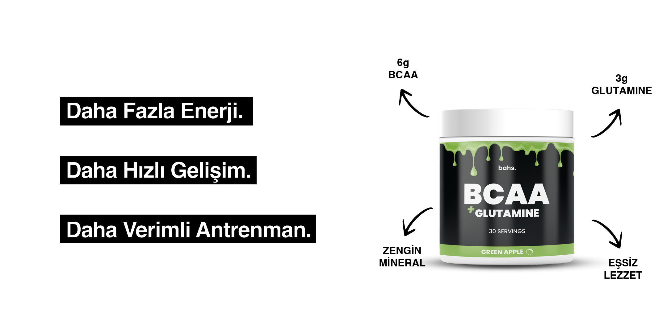 bahs. BCAA 2:1:1 amino asit oranı, 6 gram BCAA, 3 gram glutamin ve zenginleştirilmiş mineral içeriğine sahip gıda takviyesidir.
