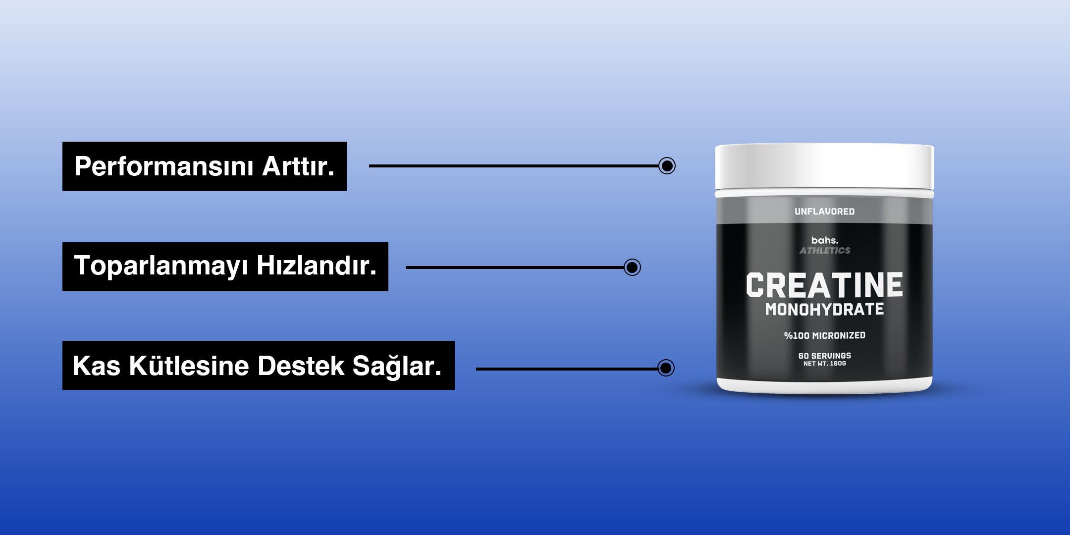 bahs. Kreatin, yoğun antrenman sonrası kas onarımını hızlandırır, seni bir sonraki antrenmana daha hazır hale getirir.