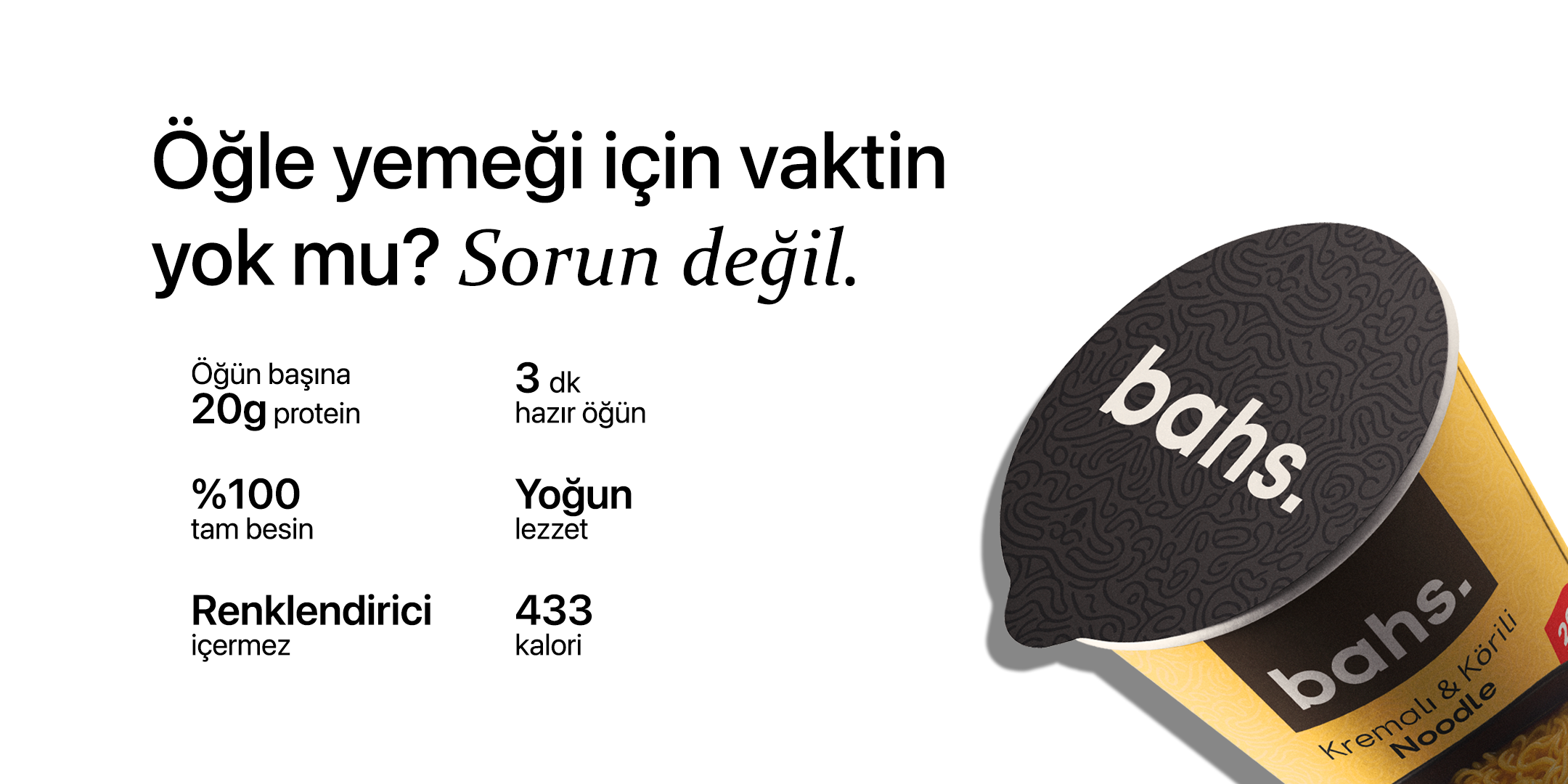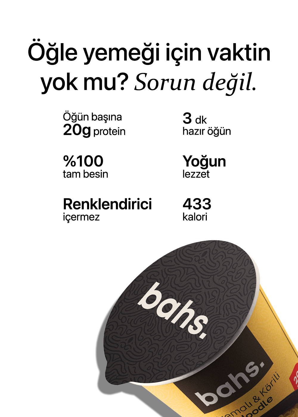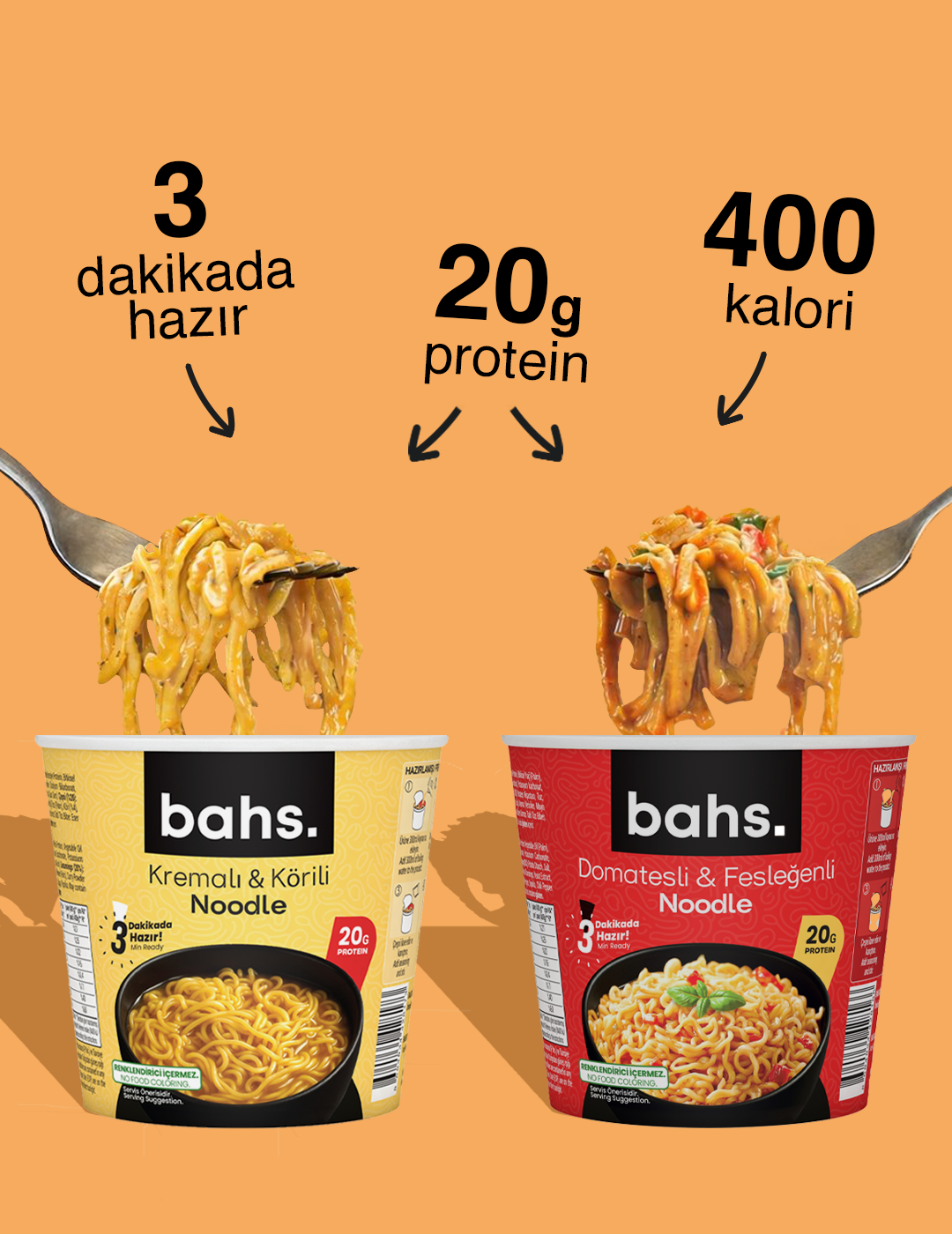 bahs.’ın proteinli noodle’ları içeriğinde 20 gram protein içeriği sunar ve koruyucu ve renklendirici içermez.