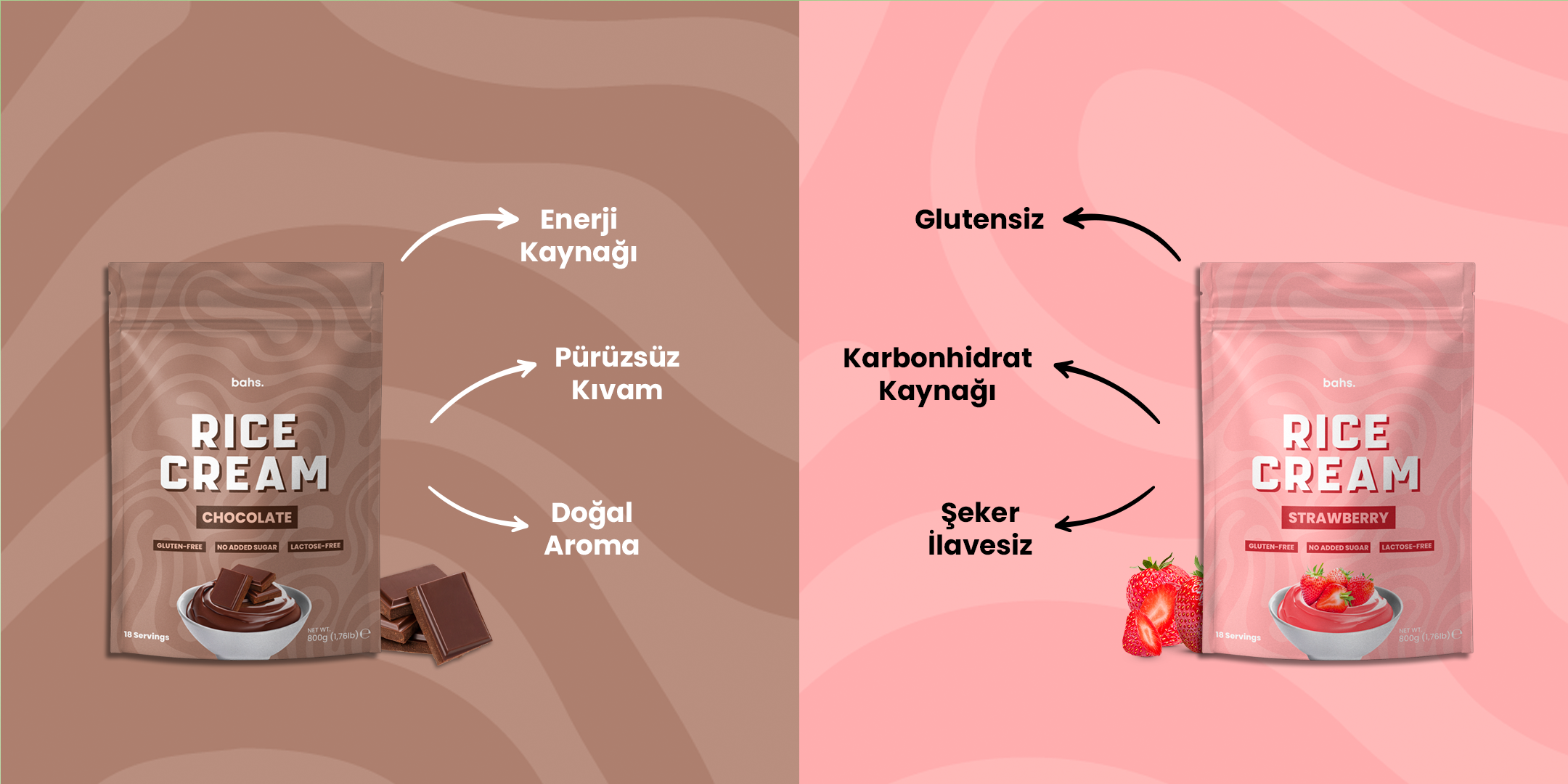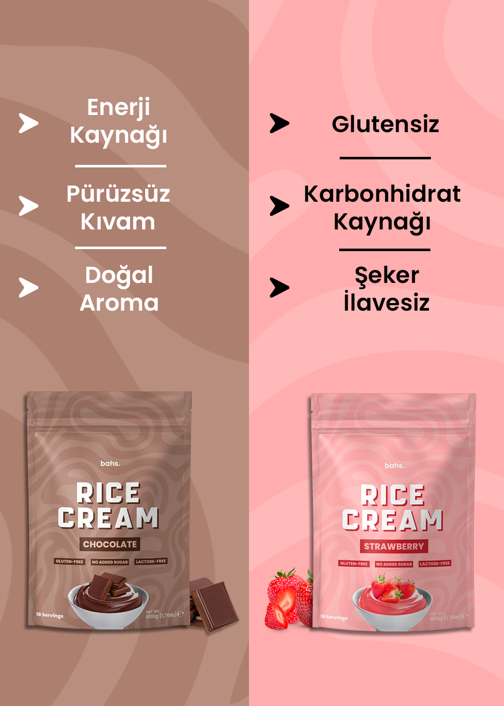 bahs. Rice Cream çeşitli aromalarıyla sizlere pratiklik, lezzet ve sağlık sunan kaliteli karbonhidrat kaynağıdır.