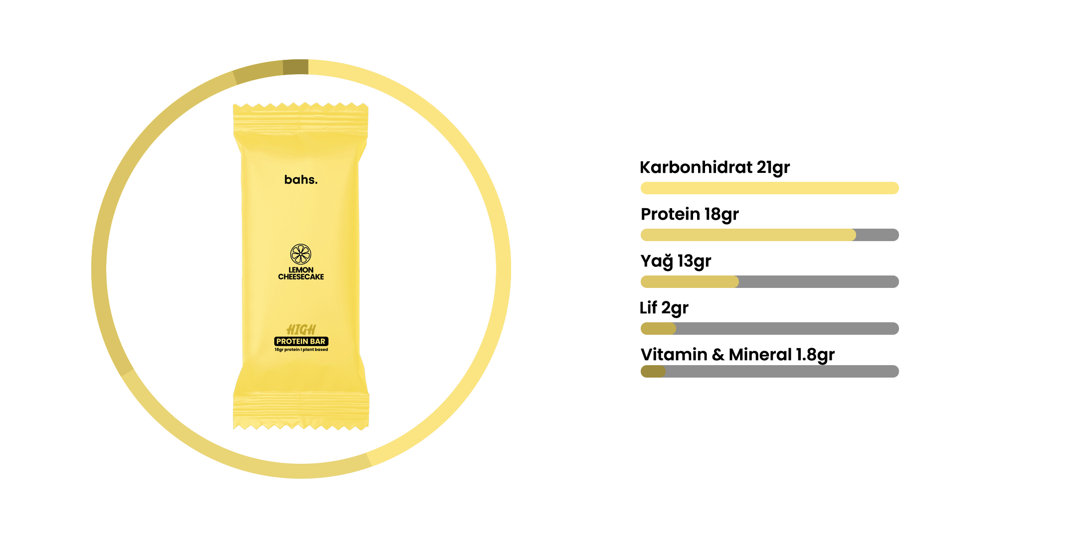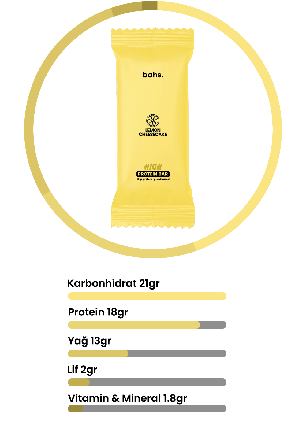 Bahs. Yüksek Protein Barları içerisindeki 18 gr proteinle size güç katarken karbonhidrat, doğal yağlar ve liflerle de bedeninizi destekleyen ve size lezzeti hissettiren bir atıştırmalıktır.