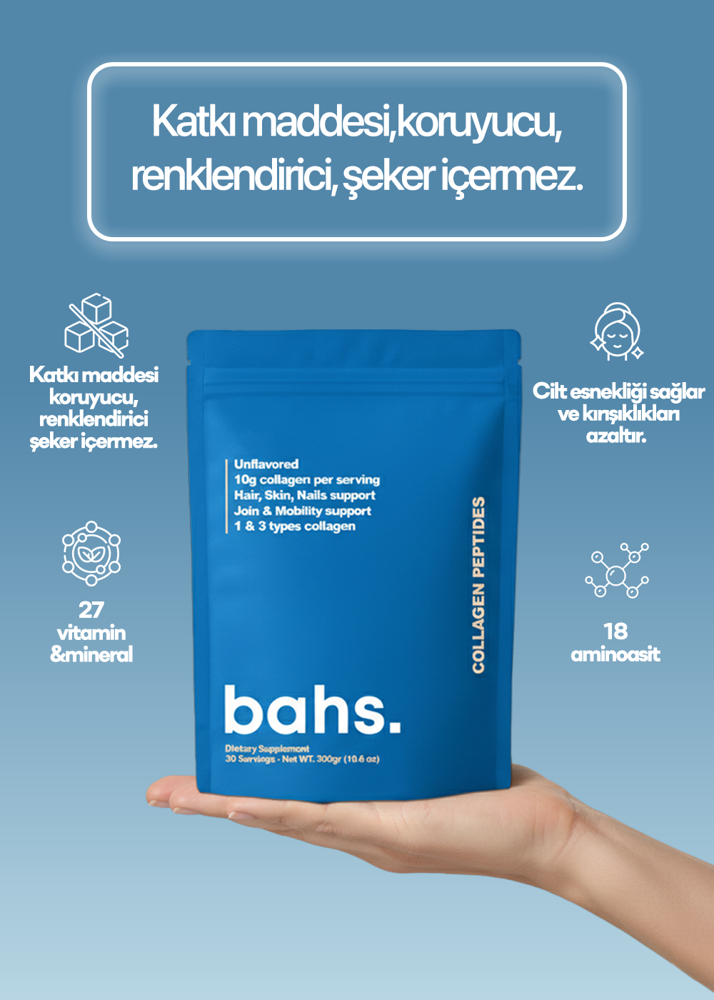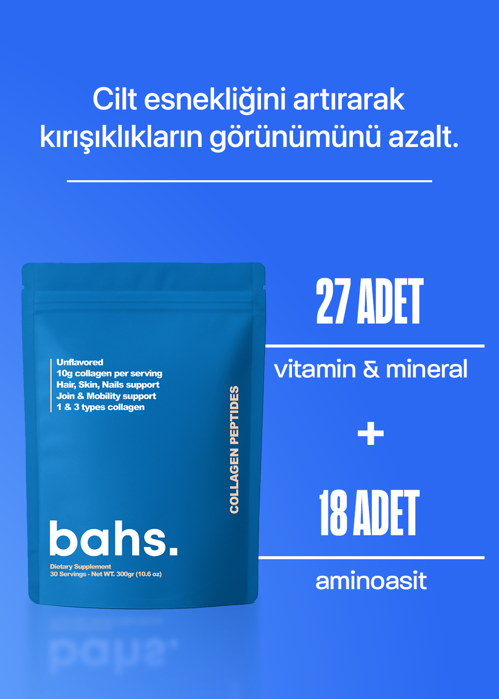 bahs. Collagen 27 adet vitamin ve mineral, 18 adet amino asit içeriğiyle besin ihtiyacını karşılayan geliştirilmiş günlük protein ürününüzdür.