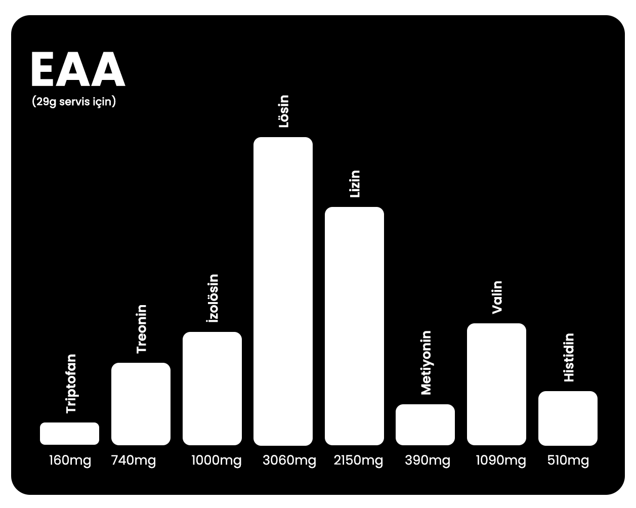 Bu temel amino asitlerden lösin, izolösin ve valin üç dallı zincirler halinde BCAA'yı oluşturur. BCAA ise kas protein sentezi sürecine başlanması için uyarıcı bir bileşendir.